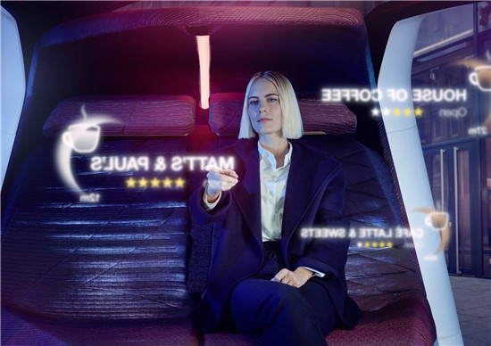 在智能人機(jī)交互模式中,除了現(xiàn)有的自然語(yǔ)音控制、手勢(shì)控制與觸屏控制外,還首次應(yīng)用了具備視線追蹤和解讀能力的人工智能系統(tǒng),開(kāi)辟了全新的交互體驗(yàn),讓車能夠更好地響應(yīng)乘客的直接與間接需求。當(dāng)車輛行駛在路上,車輛的人工智能技術(shù)會(huì)用視線追蹤功能瀏覽車輛及用戶周圍的環(huán)境,當(dāng)乘客發(fā)現(xiàn)感興趣的車外建筑或場(chǎng)所,并將視線固定于該目標(biāo)時(shí),人工智能技術(shù)會(huì)監(jiān)測(cè)乘客的視線,并判斷是否針對(duì)該目標(biāo)為乘客提供信息選項(xiàng),進(jìn)而通過(guò)語(yǔ)音或手勢(shì)命令實(shí)現(xiàn)與目標(biāo)對(duì)象的交互。例如,當(dāng)乘客將視線聚焦在感興趣的餐廳或影院時(shí),系統(tǒng)就會(huì)提供餐廳或影院的信息,并可以根據(jù)需求進(jìn)一步預(yù)訂餐桌或門票。值得一提的是,這種創(chuàng)新的人機(jī)交互形式其靈感源自于人與人之間的交流,通常人們?cè)诮涣鞯臅r(shí)候會(huì)自然的將視線聚焦在交談的對(duì)象或者談及的事物身上。