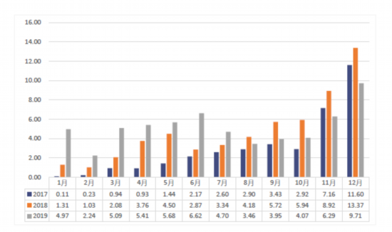 盡管動力電池的產銷量差距并不大,但裝車量卻有一定差距,這在一定程度上跟動力電池生產銷售早于車企新能源汽車的生產周期有關。2019年,動力電池裝車量達到62.2GWh,同比累計增長9.2%。盡管全年維持了正增長,但從月度數(shù)據看,動力電池下半年感受到了明顯的壓力。從8月開始,動力電池的月度裝機量都較去年有了不同程度的降低,12月降幅高達27.4%。