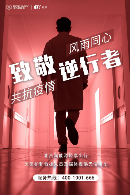 “風(fēng)雨同心,共抗疫情!”北汽新能源輕享出行用無償用車服務(wù)馳援一線,不僅是企業(yè)社會責(zé)任的體現(xiàn),也是真真正正為一線工作者爭取寶貴的時(shí)間,喚起更多生命的希望。