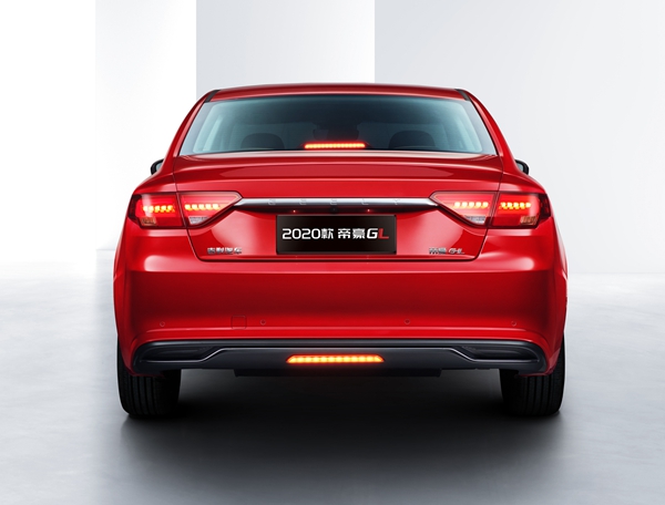 2020款帝豪GL側面相比現(xiàn)款變化則并不大,但配備了全新17英寸密輻式鋁合金輪圈。尾部方面,新車則是配備了多邊形尾燈組,并通過鍍鉻裝飾連接在一起。