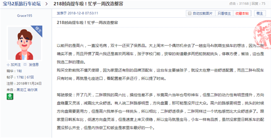 就在Q2L為奧迪帶來(lái)新的增量的同時(shí),寶馬2系和奔馳B級(jí)也獲得不少消費(fèi)者的認(rèn)可和關(guān)注。網(wǎng)友“JKE999”認(rèn)為,“就算是有人說(shuō)它丑了,可是我不覺(jué)得就行,適合自己的鞋子只有腳知道!”網(wǎng)友“Grace195”透露,“一個(gè)偶然機(jī)會(huì)去了一趟寶馬4s就萌生換車(chē)的想法,因?yàn)槎?寶馬2系)確實(shí)不貴,而且開(kāi)慣了高六我還是喜歡兩廂車(chē)……?糠奖,省油,這也是我選二胖的理由”。