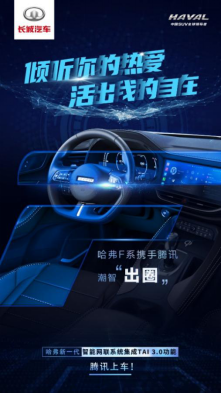 作為專攻年輕消費(fèi)群體的“智能潮品SUV”,哈弗F系與騰訊的聯(lián)手,不僅可為車主提供豐富的車載娛樂內(nèi)容,更可進(jìn)一步拓寬車載社交邊界,獲得打通上車前、行車時、下車后場景的無縫化體驗,讓社交體驗隨心所想、隨行隨享受,為年輕用戶共構(gòu)美好出行新未來、共創(chuàng)智慧出行新價值。
