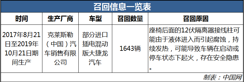 記者日前從國家市場監(jiān)督管理總局官網(wǎng)獲悉,克萊斯勒(中國)汽車銷售有限公司根據(jù)《缺陷汽車產(chǎn)品召回管理條例》和《缺陷汽車產(chǎn)品召回管理條例實施辦法》的要求,于近日向國家市場監(jiān)督管理總局備案了召回計劃。決定自2020年8月7日起,召回旗下部分進(jìn)口插電混動版大捷龍汽車。