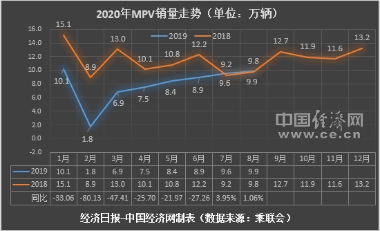 8月MPV市場(chǎng)繼續(xù)呈增長(zhǎng)態(tài)勢(shì),根據(jù)乘聯(lián)會(huì)數(shù)據(jù),當(dāng)月MPV銷量為9.9萬(wàn)輛,同比增長(zhǎng)0.9%,環(huán)比增長(zhǎng)3.5%;1-8月累計(jì)銷量62.7萬(wàn)輛,同比下降29.9%。