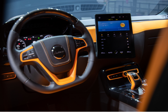 LEVC LX的內(nèi)飾采用黑色與愛馬仕橙的雙色拼接設(shè)計(jì),彰顯優(yōu)雅奢華的品味,營(yíng)造出高貴尊享的私人空間。LEVC LX擁有超大的個(gè)性定制客廂空間,長(zhǎng)寬高尺寸達(dá)1740x1450x1435mm,并且與駕駛位之間設(shè)立可升降的隔離屏窗,營(yíng)造完全獨(dú)立的私密空間。本次車展亮相的是四座行政版車型,據(jù)悉,LEVC LX后續(xù)還將推出三座旗艦版、七座豪華版,并且可以根據(jù)用戶個(gè)人喜好,對(duì)內(nèi)飾進(jìn)行超高自由度的定制化改裝。座椅材質(zhì)選用頂級(jí)手工皮質(zhì),并集加熱、通風(fēng)及按摩功能于一體。定制化星空穹頂配合超大的客廂空間營(yíng)造出仿佛身在宇宙的夢(mèng)幻乘坐感,行政酒廊則為用戶提供了更高階的奢華用車體驗(yàn)。