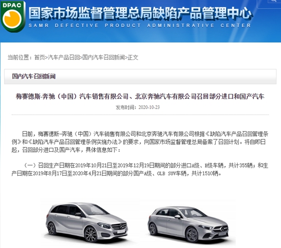 10月23日,奔馳宣布自即日起,召回共計2782輛國產(chǎn)和進口汽車。
