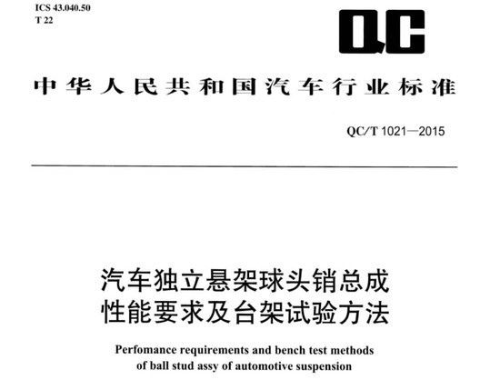 汽車獨(dú)立懸架球頭銷總成性能要求及臺架試驗(yàn)方法的行業(yè)標(biāo)準(zhǔn)