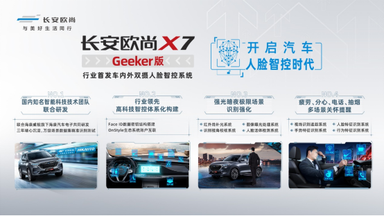 長安歐尚聯(lián)合國內(nèi)知名智能科技技術(shù)團隊海康威視旗下?灯囯娮庸餐邪l(fā),經(jīng)過三年的研發(fā)精心沉淀,萬級場景數(shù)據(jù)集精準(zhǔn)識別的嚴(yán)苛測試,建立汽車人臉智控系統(tǒng)。