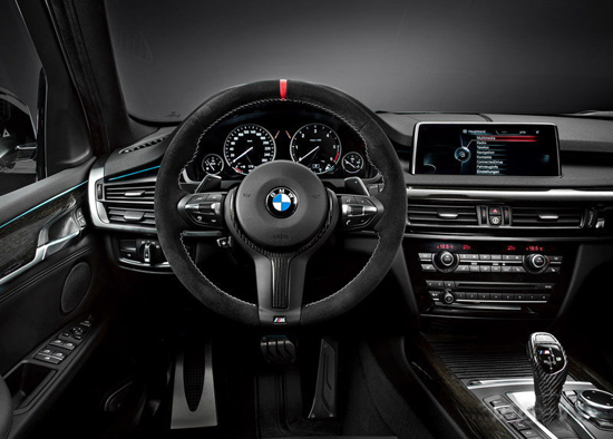 內(nèi)飾上,寶馬X5 M套件版使用了更具運動感的方向盤,方向盤使用麂皮材質(zhì),在方向盤12點位置加上了一條紅色標志。同時,該車該配備了高檔材質(zhì)的油門和剎車踏板。