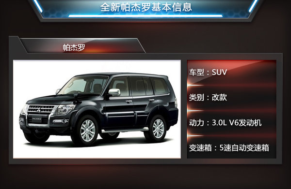 新款帕杰羅的動力系統(tǒng)與現(xiàn)款相同沒有進行任何改動,仍提供3.0L V6汽油發(fā)動機,最大功率為130kW,峰值扭矩為259Nm,與之匹配的是5速自動變速箱,全系均采用四驅(qū)系統(tǒng)。