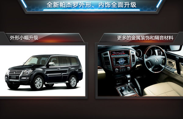 較新款歐藍德相比,改款帕杰羅的調(diào)整也算大相徑庭。同樣針對前保險杠與前進氣格柵進行修改,前臉整體風(fēng)格更顯厚重。高配車型尾部配備有LED尾燈組和全新的背負式備胎罩。內(nèi)飾方面,新款帕杰羅應(yīng)用了更多的金屬裝飾和隔音材料,高配車型還采用鋼琴黑的內(nèi)飾顏色和木紋裝飾等改動。
