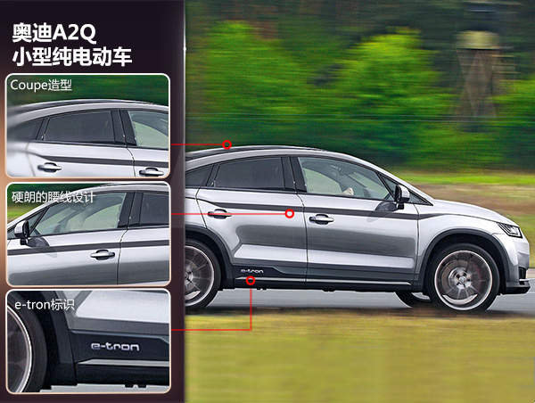 另外該款全新車型在外觀造型上將突出運動特性,四邊形頭燈加上帶狀LED行車燈與目前奧迪最新的設計語言十分相似。同時因全新車型是一款純電動產(chǎn)品,前進氣格柵尺寸明顯減小,不過奧迪經(jīng)典的多邊形大嘴設計還是得以保存。A2Q的層面造型略有幾分Coupe風格,硬朗的雙腰線設計增加了整車的側面立體感。