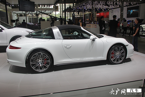2014成都車展即將于8月29日開幕,央廣汽車前方報道團(tuán)隊在9號館內(nèi)拍攝到了保時捷911 targa 4S車型。靚麗的外觀讓人一眼便能識別出這輛車,該車的很多設(shè)計有向第一代Targa致敬的意思。