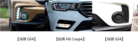【車身外觀】:哈弗H6 Coupe采用了多邊形組合的設(shè)計方案,六邊形三幅格柵,L型日間行車燈,搭配平行四邊形的霧燈設(shè)計,和正梯形的前保險杠,多邊形構(gòu)的車頭棱角分明,簡潔硬朗的線條分布充滿了力量感,也更加貼合了哈弗H6 Coupe的車型定位。傳祺GS4車頭采用了家族式的凌云飛翼設(shè)計,但是霧燈和日間行車燈的配合配合稍顯突兀,車頭布局缺乏靈性。