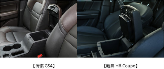 哈弗H6 Coupe采用了隱藏式的杯架,不用時可以收起,扶手箱內(nèi)接有USB口可供手機(jī)充電,并且為數(shù)據(jù)線留出了凹槽,可以在箱蓋關(guān)閉的情況下避免壓線,注重實用性。傳祺GS4緊湊的按鍵布局省下了空間,除了杯架還有一個放置手機(jī)的凹槽,拿放手機(jī)十分便利。