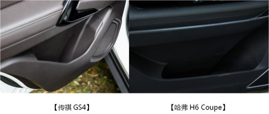 車門部位的儲物空間風(fēng)格二者各不相同,哈弗H6 Coupe儲物格更長,適合裝雜志類體積較大的物品。傳祺GS4采用的V字形的儲物空間設(shè)計,儲物格更深,適合雨傘一類的物品順斜坡放置,拿放更加方便。
