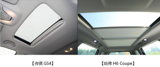 天窗作為車輛配置的大件之一,也是購車的重要影響因素,哈弗H6 Coupe的全景天窗視野十分廣闊,SUV甚至能給人敞篷車的感覺。沒有對比就沒有傷害,經(jīng)過“別人家的孩子”比較之后,傳祺GS4本來正?梢约臃值奶齑埃瑓s給了人一種“小家子氣”的感覺。