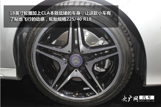 18英寸輪圈加上CLA本就低矮的車身,讓這款小車有了貼地飛行的動感,輪胎規(guī)格225/40 R18。