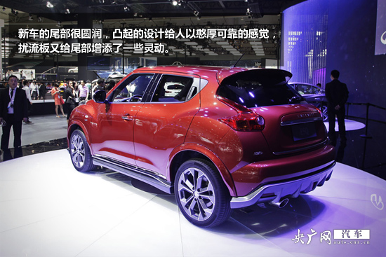 在本屆車展上,英菲尼迪全新車型ESQ正式發(fā)布。預(yù)計(jì)新車9月份上市銷售。新車基于日產(chǎn)Juke Nismo車型改進(jìn)而來。
