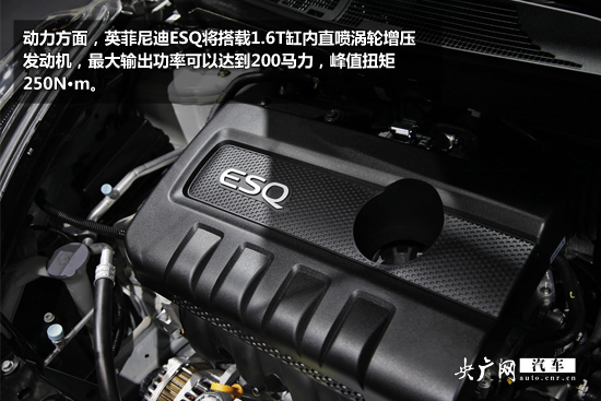 動力方面,英菲尼迪ESQ將搭載1.6T缸內(nèi)直噴渦輪增壓發(fā)動機(jī),最大輸出功率可以達(dá)到200馬力,峰值扭矩250N·m。傳動部分,與之匹配的將是一臺CVT無級變速箱。此外該車還將配備適時(shí)四驅(qū)系統(tǒng)。