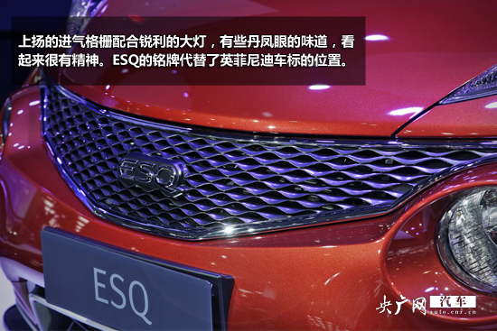 在本屆車展上,英菲尼迪全新車型ESQ正式發(fā)布。預計新車9月份上市銷售。新車基于日產(chǎn)Juke Nismo車型改進而來。
