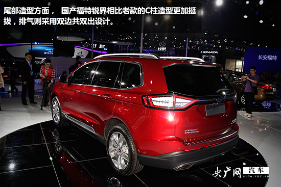 軸距方面,長安福特國產(chǎn)的銳界軸距達(dá)到2850mm左右,符合七座布局的要求。側(cè)面造型也符合美系車型的厚重感,后車頂還加入了后尾翼設(shè)計。銳界的輪轂采用20寸多幅輪轂,輪胎采用的是固特異型號為245/50 R20的輪胎。同時,國產(chǎn)銳界加入了全景天窗和行李架配置,生活氣息更加濃厚。