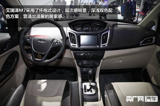 內(nèi)飾方面,艾瑞澤M7采用了懷抱式設(shè)計,層次感明顯,深淺雙色配色方案,營造出溫馨的居家感。艾瑞澤M7中控臺的一大設(shè)計亮點是把儀表盤設(shè)計在了中控臺中央,但似乎駕駛員看起來不太方便。儀表盤采用了菱形設(shè)計,造型時尚。 中控臺配備了7寸彩色觸摸屏,清晰度和靈敏度欠佳。 車內(nèi)還配備了全景天窗,車內(nèi)的采光和通風(fēng)效果得到提升,但尺寸并不算大。