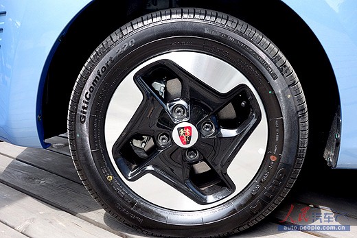 漂亮的13英寸鋁合金刀鋒式輪轂顯示出榮威E50與眾不同的車型定位,輪胎則采用了規(guī)格為175/60 R13的佳通產(chǎn)品,定位于節(jié)能舒適。