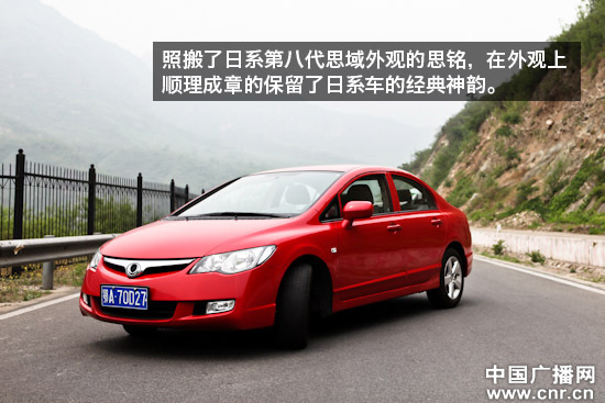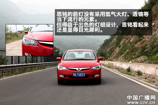 思銘的外觀設計,可以說要說的很多,但實際上又沒什么可說的,因為它完全是照搬了日系第八代思域的成熟設計。有人認為這樣的行為無異于抄襲、山寨,而有人認為照搬一個經(jīng)典成熟的外觀設計,比自己重新設計車身造型更讓人喜歡。孰優(yōu)孰略,留給大家自己判斷。