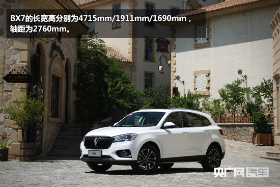 寶沃BX7定位于中型SUV,車身尺寸較同價位的途觀、CR-V等緊湊級SUV大出不少,長寬高分別為4715mm/1911mm/1690mm,軸距為2760mm,超過一米九的車寬印證了其“智聯(lián)寬體SUV”的定位。