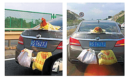 “就這樣在車(chē)尾掛著,陪你一路看風(fēng)景,考慮過(guò)雞的感受嗎?”上周,微信朋友圈瘋狂轉(zhuǎn)發(fā)一張圖。春節(jié)期間,一輛廣東車(chē)牌的轎車(chē)行走在高速上被其他網(wǎng)友拍到,竟然車(chē)尾吊著兩只鴨,后蓋上還趴著一只雞。這種奇葩的裝雞鴨方式迅速在網(wǎng)絡(luò)上發(fā)酵,更有網(wǎng)友把這種行為神評(píng)為“后置發(fā)動(dòng)雞,雙渦輪增鴨,這車(chē)配置好高,我被嚇到了!”一時(shí)成為笑談。