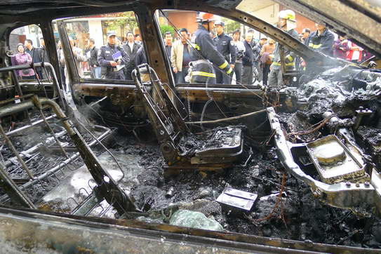 2011年,杭州一輛電動出租車發(fā)生自燃資料圖片。 新華社發(fā)
