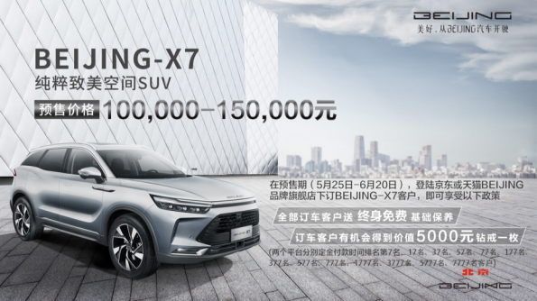 5月25日,BEIJING-X7“純粹致美探索日”探秘之旅,在全網(wǎng)100余平臺完成云端直播。北京汽車藍(lán)谷營銷服務(wù)有限公司總經(jīng)理李一秀宣布BEIJING-X7全面開始接受預(yù)訂,預(yù)售價格為10-15萬元,預(yù)售政策包含終身免費保養(yǎng)和訂車得鉆戒等。