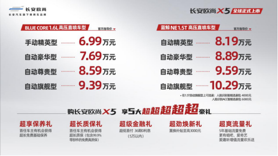 為了能夠讓用戶在用車方面消除后顧之憂,在上市當(dāng)天,長安歐尚X5還推出了超享保養(yǎng)禮、超長質(zhì)保禮、超級(jí)金融禮、超勁煥新禮、超爽流量禮五大超豪禮購車福利,在高價(jià)值產(chǎn)品之外,保障每位用戶都能實(shí)現(xiàn)輕松購車、省心用車。