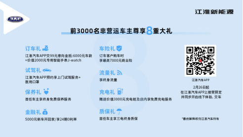 2月26日起,用戶可以在“江淮汽車APP”上進(jìn)行咨詢購買。此外為回饋北京用戶對(duì)江淮新能源的關(guān)注與期盼,在預(yù)售期間交納iC5意向金,可優(yōu)先享受8重大禮。高能量、高安全、高性能和高顏值,這臺(tái)更“懂你”的高能純電轎跑iC5你值得擁有!
