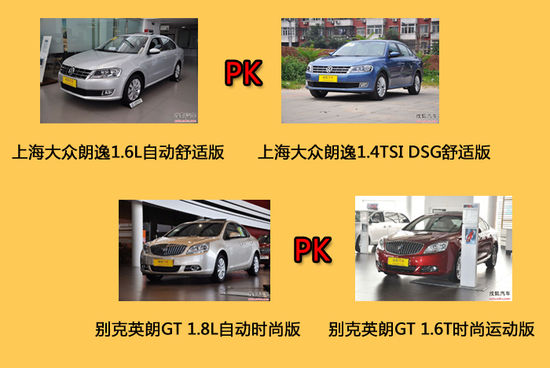 這四款車型分別是:上海大眾朗逸1.6L自動(dòng)舒適版、上海大眾朗逸1.4TSI DSG舒適版、別克英朗GT1.8L自動(dòng)時(shí)尚版、別克英朗GT1.6T時(shí)尚運(yùn)動(dòng)版。這四款車我們將進(jìn)行同品牌之間對(duì)比,而我們選擇的對(duì)比車型的配置基本相當(dāng),所以指導(dǎo)價(jià)上的差異幾乎都來自動(dòng)力系統(tǒng)方面的不同,下面我們就來看看它們各自的表現(xiàn)如何吧。