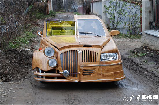 Vasyl Lazarenko是一位來自烏克蘭西部的工匠。由于女友非常喜歡坐敞篷車去兜風(fēng),而他自己又覺得硬頂車篷很實(shí)用,于是突發(fā)奇想,決定自己打造一款世界上獨(dú)一無二的“雙面車”。 這輛車的左邊是現(xiàn)代轎車的造型,而右邊則是上世紀(jì)30年代的敞篷車造型。整輛車的外形完全是靠手工將橡木拼接而成。Vasyl則花了一年多的時間才將這些木頭雕刻好并拼接在一起。