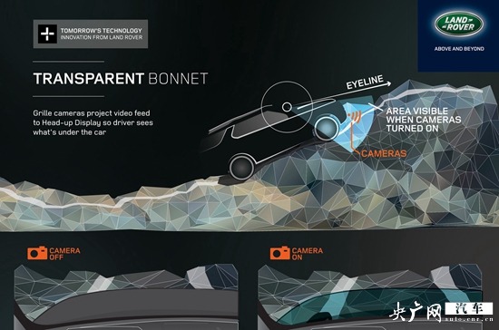 本月的紐約車展和北京車展,路虎將發(fā)布發(fā)現(xiàn)Vision概念車,該車將展示路虎發(fā)現(xiàn)車型的最新設(shè)計(jì)理念,其中包括一項(xiàng)“透明引擎蓋”技術(shù),該技術(shù)能夠幫助駕駛員“看穿”引擎蓋,看清引擎蓋下的路面情況,幫助駕駛員了解地形并及時(shí)避開(kāi)各種障礙物。