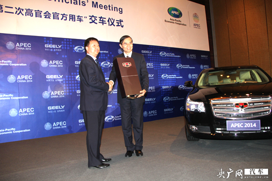 2014年亞太經(jīng)合組織第二次高官會將于5月份在青島召開,4月29日,吉利汽車正式向2014年APEC會議青島市籌委會交付高官會官方指定用車,而2014年APEC高官會議第一次在寧波召開時也選擇了吉利帝豪轎車作為官方用車。