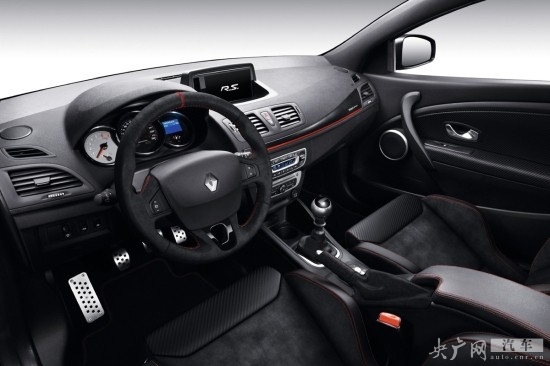梅甘娜R.S. 275 Trophy內(nèi)飾以大量使用的麂皮材質(zhì)、與紅色車縫線來突顯其性能的味道,碳纖維排氣尾喉以及選配的19寸黑色Speedline Turini輪圈,都源自于梅甘娜的競技專用車型,這也使得這款車更具賽車風味。