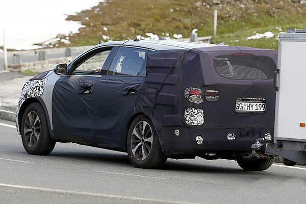 通過曝光的諜照來看,新車被厚重的偽裝包裹,不過可以看到車身尺寸將比現(xiàn)款索蘭托更大,據(jù)猜測是由于軸距加長后的效果。