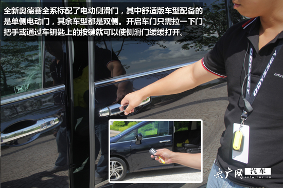 全新奧德賽還有一大不得不說的變化就是全系標(biāo)配了電動(dòng)側(cè)滑門,其中舒適版車型配備的是單側(cè)電動(dòng)門,其余車型都是雙側(cè)。開啟車門只需拉一下門把手或通過車鑰匙上的按鍵就可以使側(cè)滑門緩緩打開,之后就可以等待貴賓緩緩走上車了。