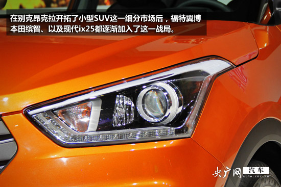 在別克昂科拉開(kāi)拓了小型SUV這一細(xì)分市場(chǎng)后,福特翼博、本田繽智、以及現(xiàn)代ix25都逐漸加入了這一戰(zhàn)局。目前汽車(chē)市場(chǎng)呈現(xiàn)出一定年輕化趨勢(shì),剛剛步入社會(huì)的年輕人不乏對(duì)價(jià)格較低、外觀時(shí)尚的小型SUV車(chē)型的需求。雖然這一市場(chǎng)的銷(xiāo)量并沒(méi)有達(dá)到很高的水準(zhǔn),但未來(lái)這類(lèi)車(chē)型的份額一定會(huì)有非常明顯的提升。如何抓住年輕消費(fèi)者的脈搏一貫是韓系廠商的優(yōu)勢(shì),本次ix25的上市也絲毫沒(méi)有令我們失望。