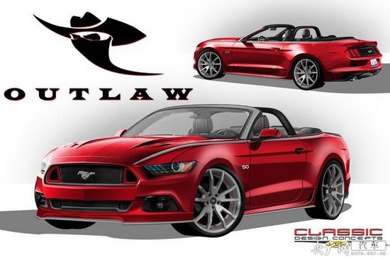 Classic Design Customs打造的Mustang Outlaw基于Mustang GT敞篷版打造,該車將配備型的空力套件,新設(shè)計(jì)的進(jìn)氣格柵和20寸合金輪圈,同時(shí)這款車還采用了Steeda減震彈簧以及Wilwood剎車。動(dòng)力方面,這款車搭載5.0L V8發(fā)動(dòng)機(jī),配備了福特的賽車增壓器,能輸出466kW(625PS)的火力。