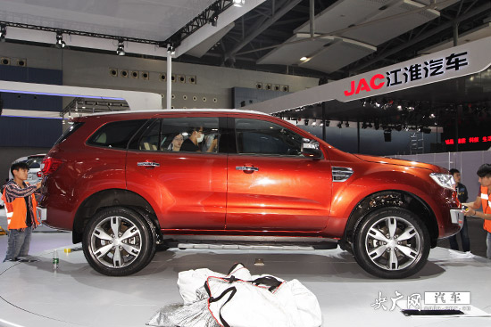 2014廣州車展即將于11月19日開幕,央廣汽車前方報(bào)道團(tuán)隊(duì)在5.2館內(nèi)拍攝到了福特的全新SUV車型撼路者。從起名來(lái)看,這款車就具有相當(dāng)硬派,其非承載式的車身結(jié)構(gòu)也使之具備相當(dāng)?shù)脑揭皾摿Α?/p>
