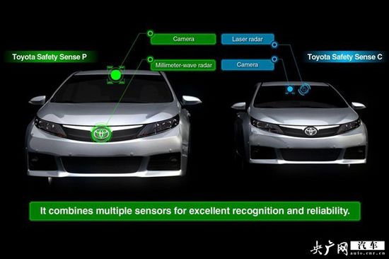 “TSS P”相比“TSS C”最大的區(qū)別在于采用毫米波雷達(dá)和攝像頭,確保較高的識(shí)別性和可靠性。功能方面,在“TSS C”的基礎(chǔ)上增加了自適應(yīng)巡航系統(tǒng)ACC、附帶行人探測(cè)功能的預(yù)碰撞安全系統(tǒng)PCS,主要面向更高級(jí)別車型。