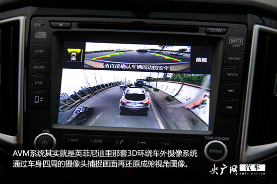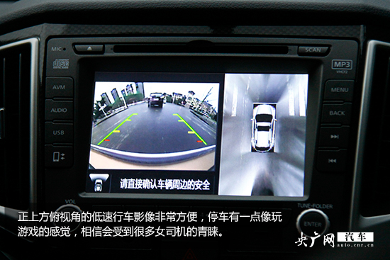 雖然內(nèi)飾設(shè)計(jì)樸實(shí),但絕對稱得上內(nèi)有乾坤。亮點(diǎn)就在于日產(chǎn)的亮點(diǎn)技術(shù)AVM系統(tǒng),也就是360度俯視角泊車影像系統(tǒng)。沒錯(cuò)這套系統(tǒng)我們在英菲尼迪的SUV車型上經(jīng)常見到,它通過全車四周的攝像頭將車外影像合成為一個(gè)畫面,相當(dāng)于從車頂俯瞰車身,大大提升了駕駛員對于狹小空間通過性的判斷。這是一個(gè)相當(dāng)實(shí)用的設(shè)計(jì),不過全車系配置目前還沒有公布,AVM系統(tǒng)配備到哪些價(jià)位的車型還不得而知。