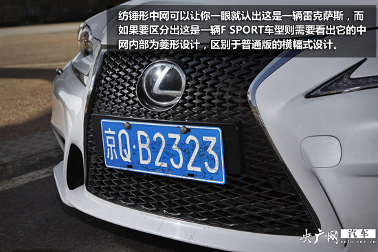 紡錘形中網可以讓你一眼就認出這是一輛雷克薩斯,而如果要區(qū)分出這是一輛F SPORT車型則需要看出它的中網內部為菱形設計,區(qū)別于普通版的橫幅式設計。運動包圍也將普通版的前霧燈改為分別為前輪胎和前剎車系統(tǒng)散熱的進氣道。