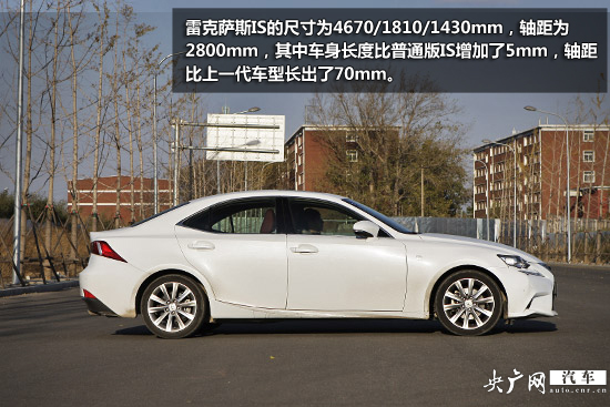 雷克薩斯IS的尺寸為4670/1810/1430mm,軸距為2800mm,其中車身長度比普通版IS增加了5mm,軸距比上一代車型長出了70mm。