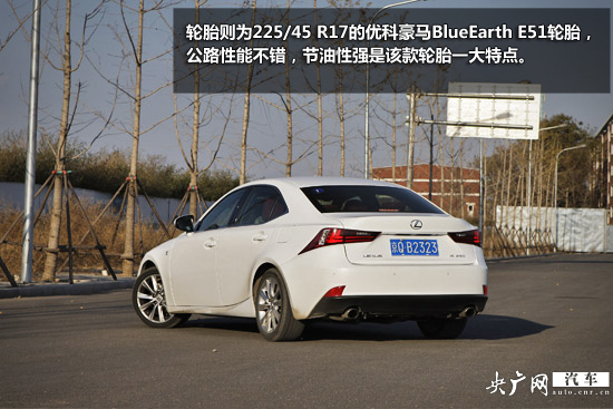 車尾部的線條比較銳利,采用雙邊共雙出式設計。輪胎則為225/45 R17的優(yōu)科豪馬BlueEarth E51輪胎,公路性能不錯,節(jié)油性強是該款輪胎一大特點。